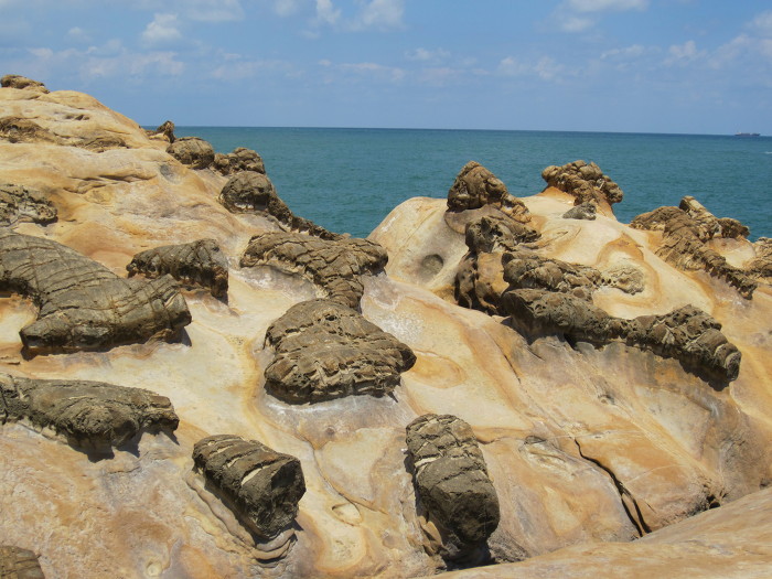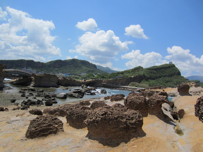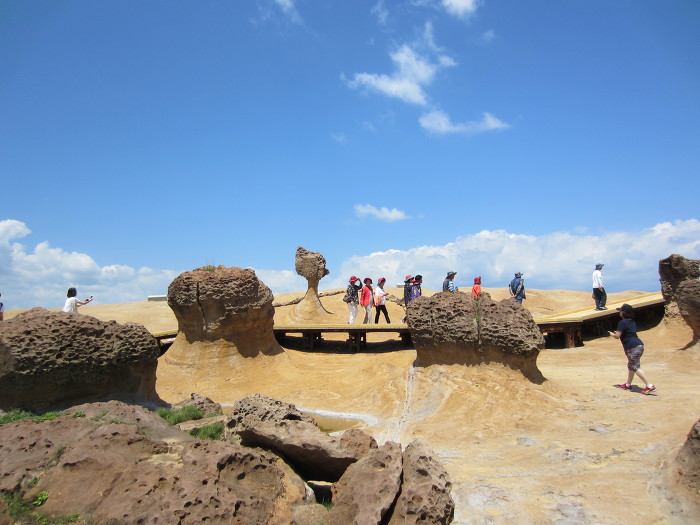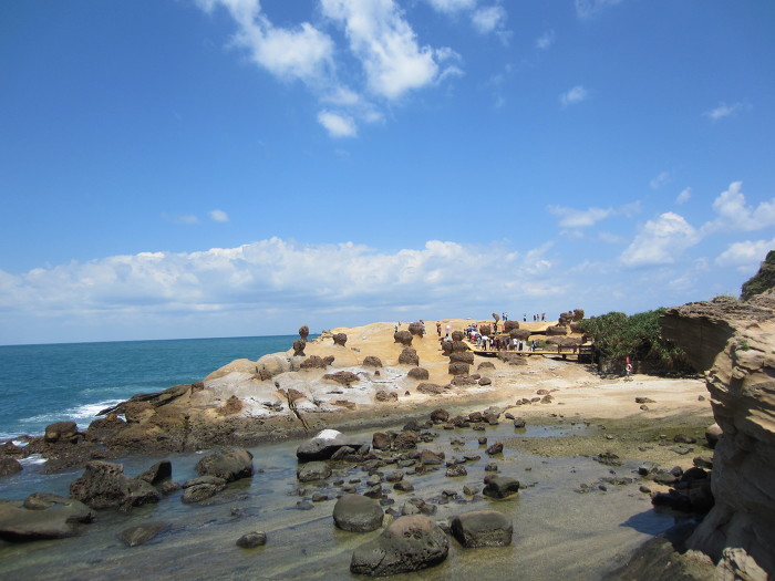 타이페이 북부 바닷가에 오랜 세월 침식과 풍화작용으로 자연적으로 만들어진 기암괴석들이 있습니다.